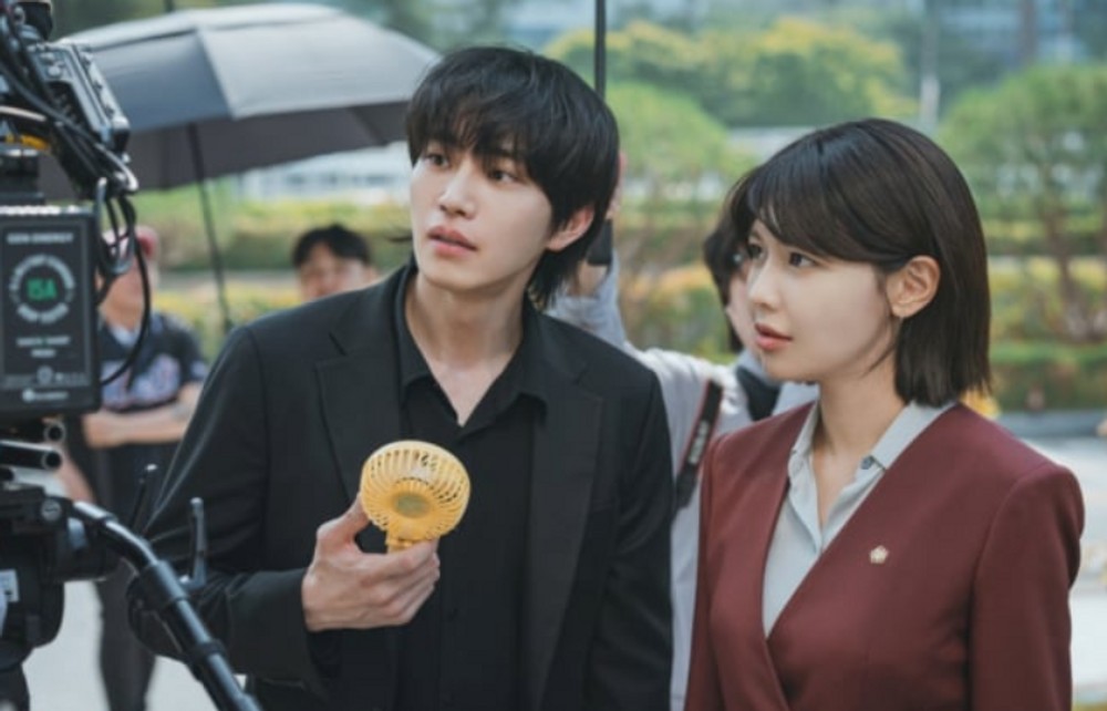 특히 첫 공개를 나흘 앞둔 18일에는 최수영과 김재영의 케미스트리를 엿볼 수 있는 뒤모습이 공개되었다. 스타 변호사 ‘맹세나’ 역할의 최수영과 프로 아이돌인 ‘도라익’ 역할의 김재영이 서로의 캐릭터에 완벽하게 몰입한 모습이 인상적이다.