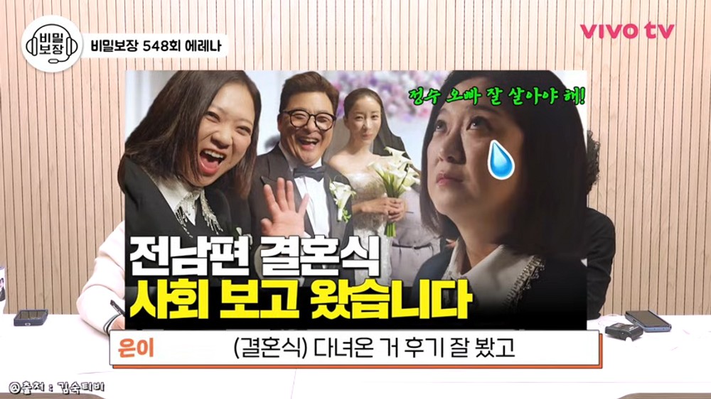 [TV리포트=배효진 기자] 코미디언 김숙이 가상 전남편 윤정수의 결혼을 진심 어린 마음으로 축하하며 당시의 뒷이야기를 전했다. 웃음과 짠함이 교차한 결혼식 현장의 분위기가 공개되며 관심을 모았다.