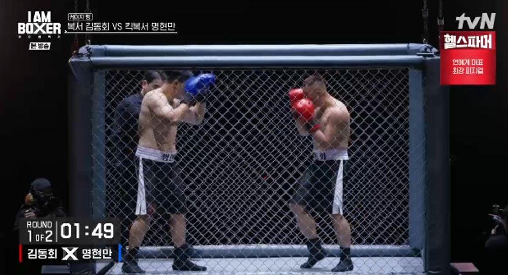19일 tvN ‘아이 엠 복서’ 5회에서는 세 번째 파이트, 세 개의 링이 계속되는 가운데 전(前) 킥복싱 헤비급 챔피언 명현만과 전국체전 14연패 김동회의 케이지 링 매치가 펼쳐졌다.