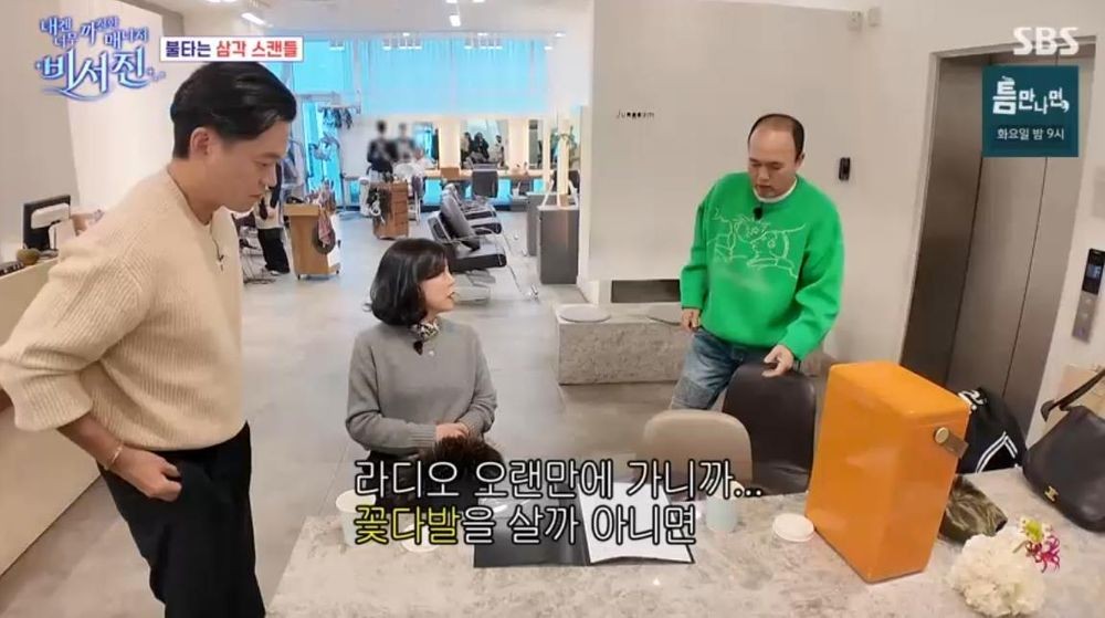이후 라디오 출근을 앞두고 최화정이 “오랜만에 라디오 가니까 꽃을 가져갈까 생각한다”라며 고민했다. 이서진이 “꽃은 하루 지나면 쓰레기다”라고 하자, 최화정은 “그래서 너 우리 집 왔을 때 꽃 사 왔어?”라고 되물어 웃음을 자아냈다.