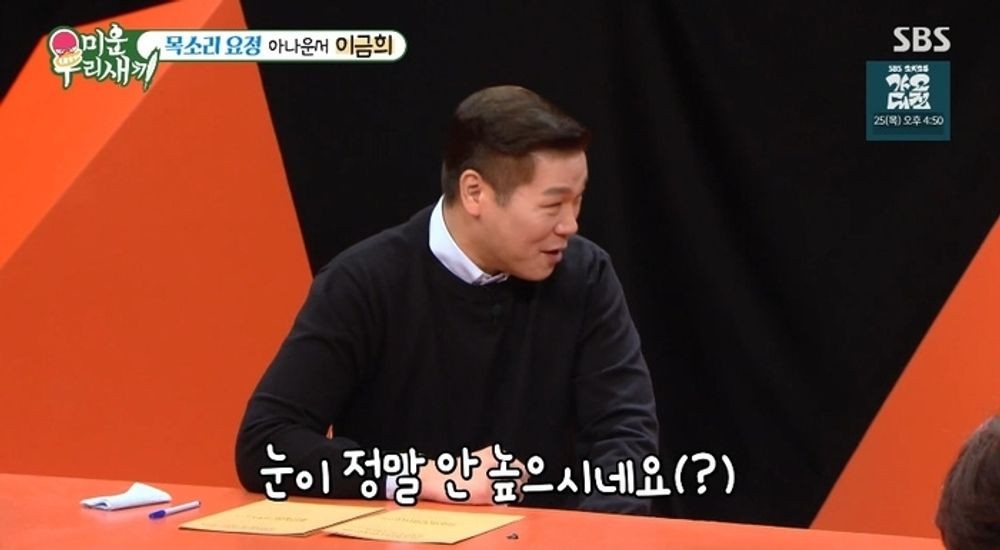 이에 서장훈은 “그러면 외모만 보냐”고 물었고, 신동엽은 “외모 지상주의 끝판왕”이라고 거들었다. 이금희는 “부끄럽지만 사실”이라며 이상형으로 정우성을 꼽았다. 그러자 서장훈은 “눈이 별로 안 높으시다. 너무 평범하셔서 놀랐다”고 농담해 웃음을 자아냈다.