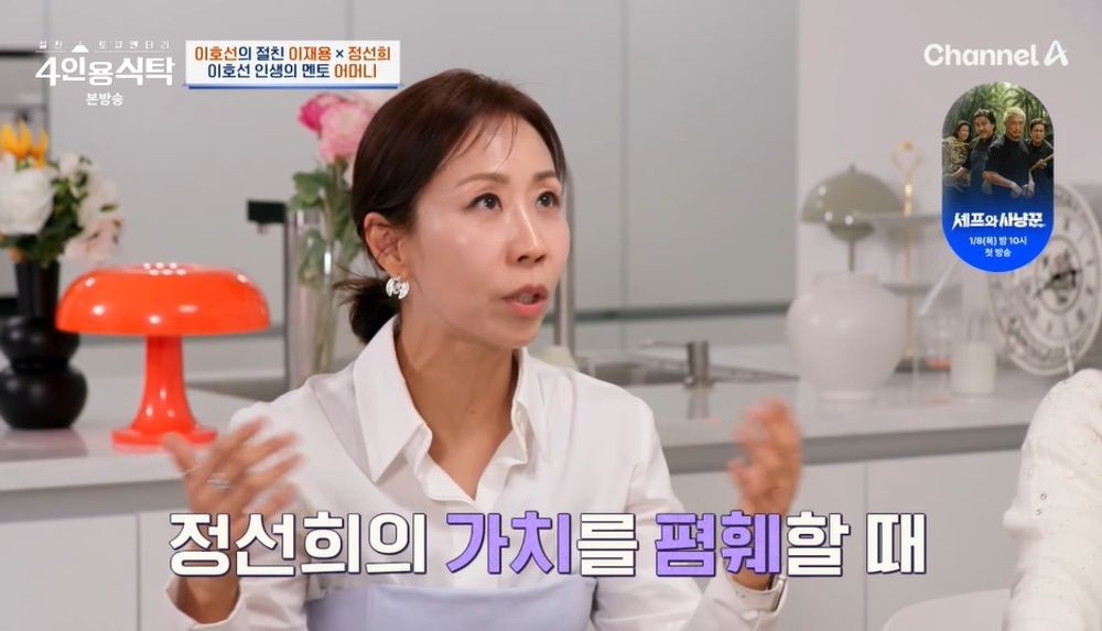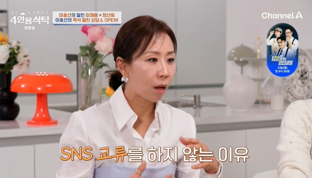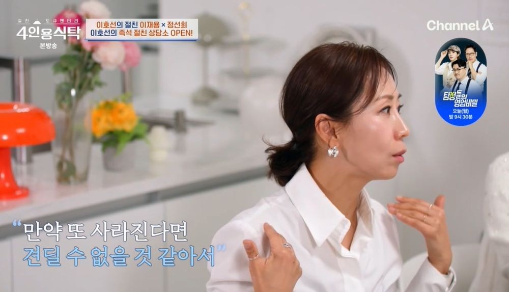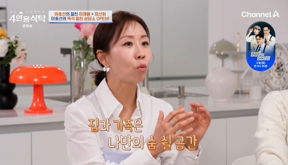 22일 방송된 채널A ‘절친 토큐멘터리-4인용 식탁’에서는 이호선이 이재용, 정선희, MC 박경림을 초대했다.