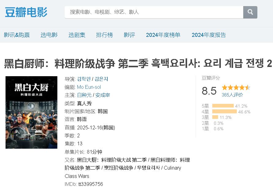 지난 시즌인 ‘흑백요리사’에서도 더우반에 리뷰 페이지가 생성되었고, 당시에는 9천 5백여 건의 리뷰와 2만 3천여 명의 별점 평가가 이루어졌다. 특히, 중국 IT 기업 텐센트가 자사의 OTT 플랫폼 ‘텐센트비디오’에서 ‘흑백요리사’를 표절한 요리 경연 예능 프로그램 ‘一饭封神'(이판펑션)을 공개해 큰 논란이 되었던 사건이 있다.