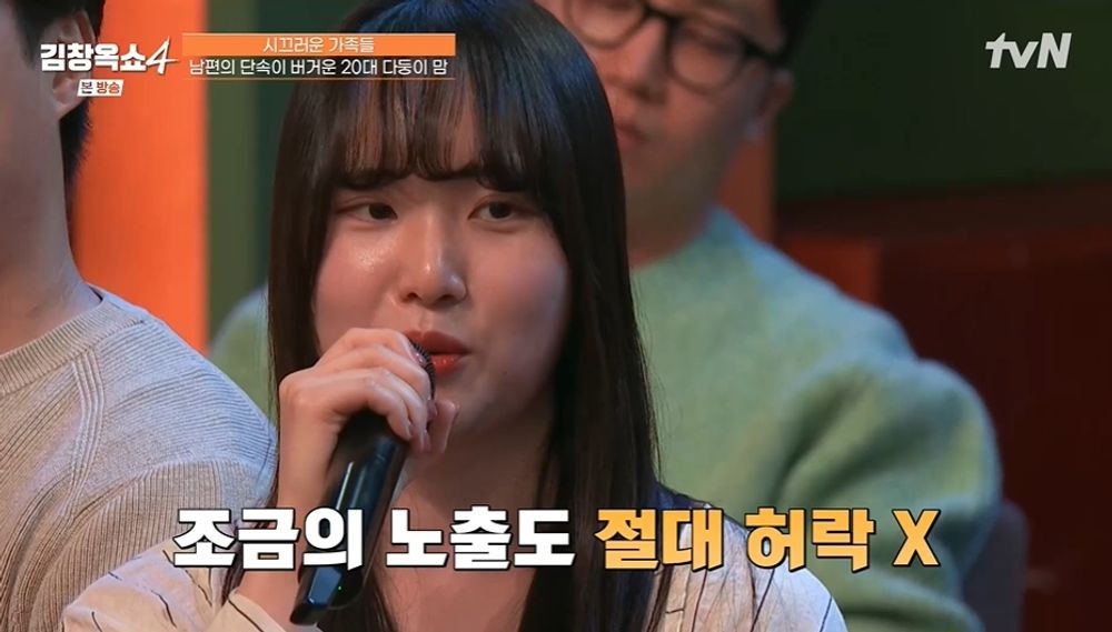 사연자를 본 황제성은 “고등학생 같은데”라고 말하기도. 아내는 만 27세, 남편은 만 31세로, 9년 차 부부라고. 또한 1남 3녀를 키우고 있었다. 아내는 “연년생으로 낳아서 셋째 낳았을 때가 23세였고, 막내는 올해 태어났다”고 밝혔다. 이에 김창옥은 “아주 몹쓸 남자군요”라고 말하기도.