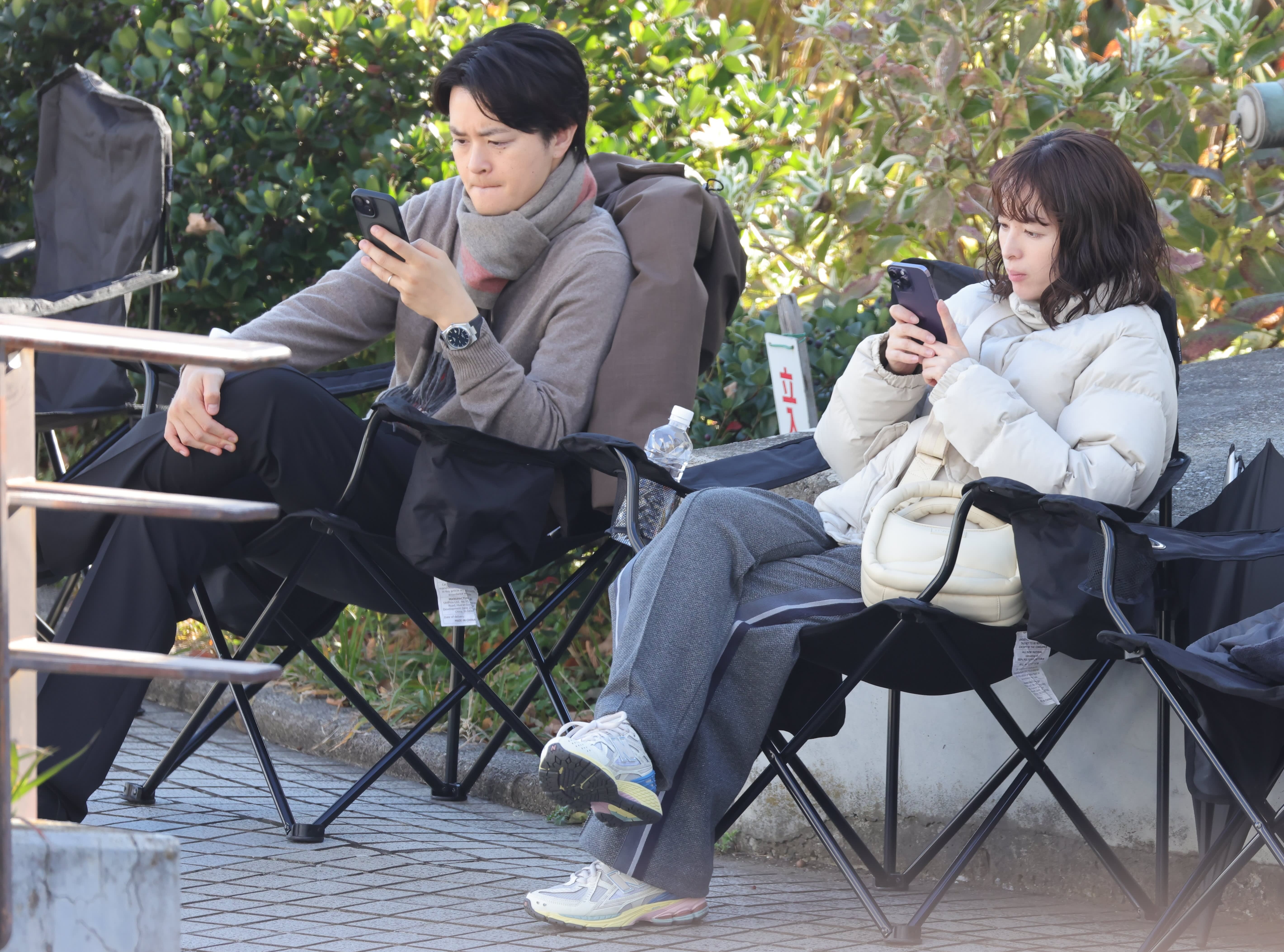 大きなマフラーを首に巻いているのは見上愛(25)、穏やかな表情を浮かべているのは清野菜名(31)だ。その隣を瀬戸康史(37)が歩いている。